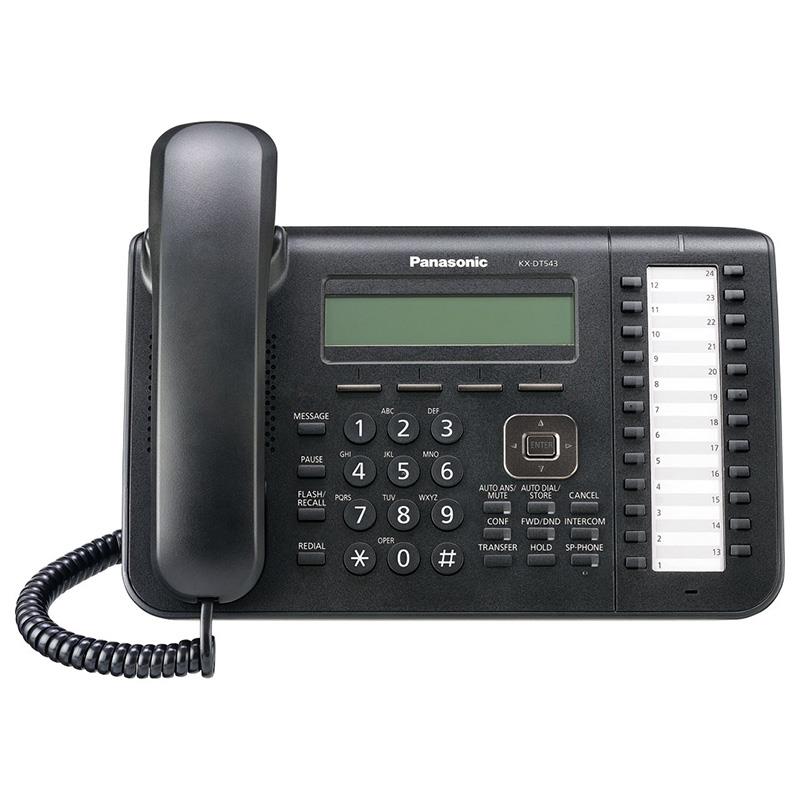 تلفن سانترال تحت شبکه پاناسونیک KX-NT543 یکی از گزینه‌های برتر این برند برای استفاده در سانترال‌های پرظرفیت نظیر NS و TDE محسوب می‌شود. این مدل تنها در اندازه‌ی نمایشگر با مدل KX-NT546 تفاوت دارد؛ به‌طوری‌که KX-NT543 دارای صفحه نمایش 3 سطری است، در حالی که KX-NT546 با نمایشگر 6 سطری عرضه می‌شود. این تلفن تمام امکانات تماس‌های دیجیتالی پاناسونیک را ارائه می‌دهد اما از مسیر کابل شبکه به دستگاه سانترال متصل می‌شود.